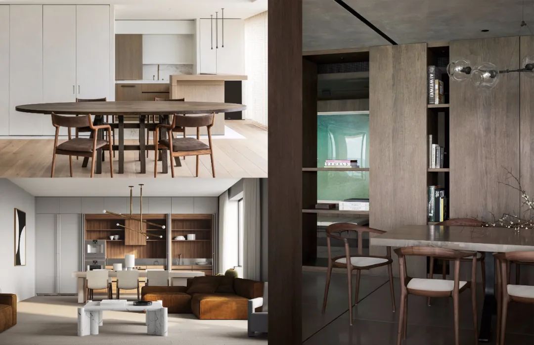 餐廳作為客廳區域的延伸和擴展,以及客廳與廚房之間的過渡與緩沖,它同時也承載著各種各樣的空間功能。